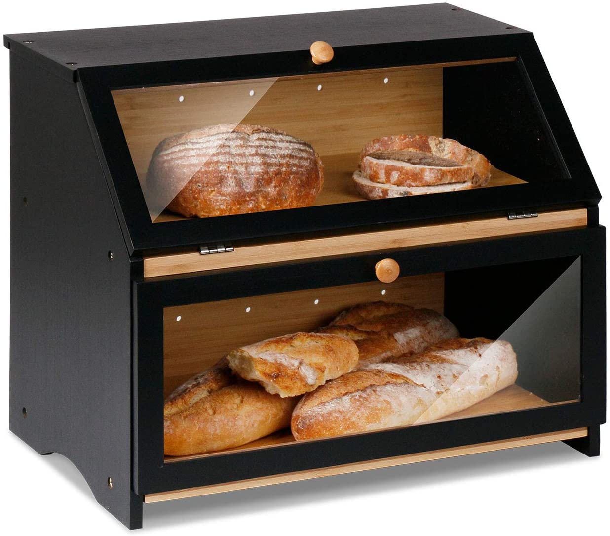 This 2-layer extra large bread box has a stylish contemporary design that works for more than just bread. It’s great as a kitchen or desktop organizer. Easy to clean, elegant design complements any kitchen, clever contemporary design with a vintage twist.